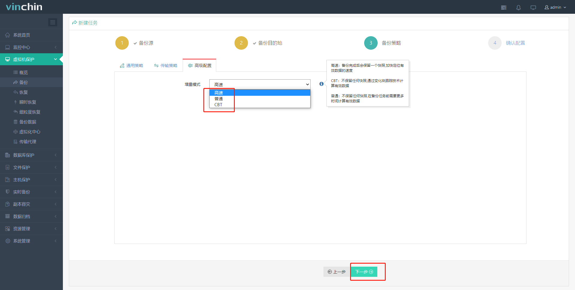 普通:不保留任何快照,在备份任务前需要更多时间计算有效数据