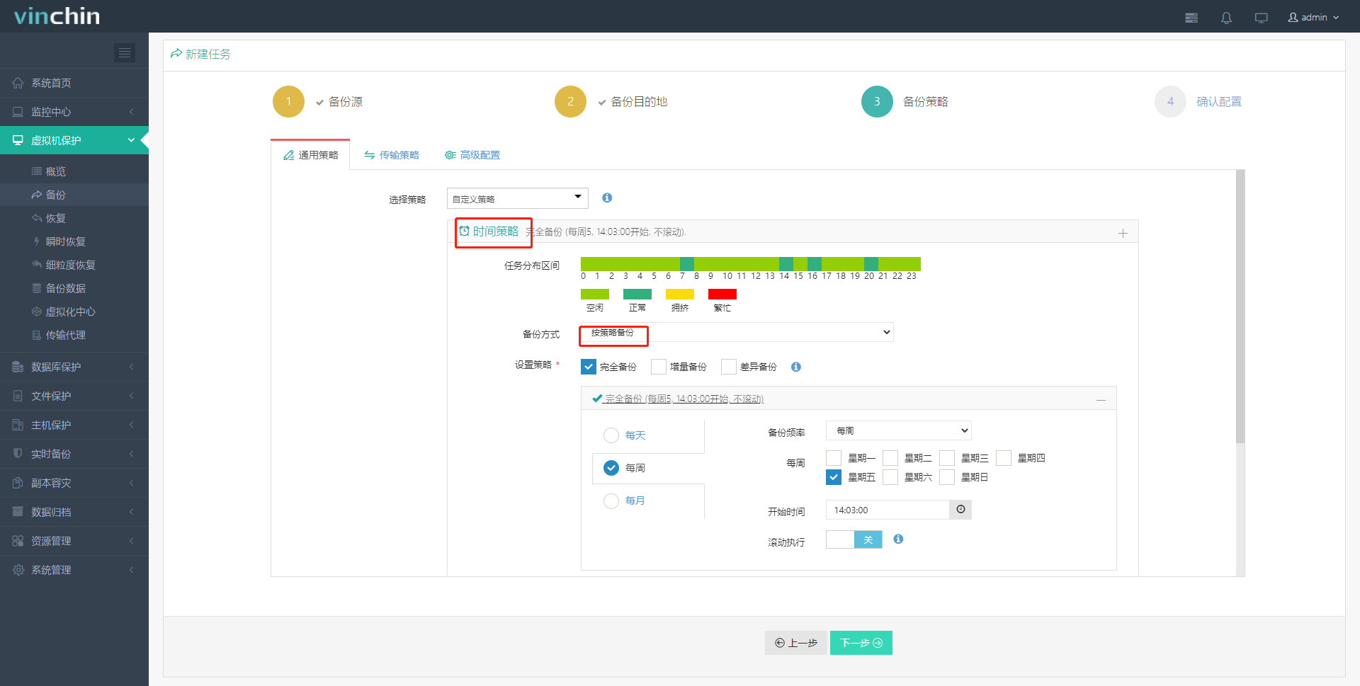 4、设置备份策略,备份方式有【按策略备份】和【一次性备份】