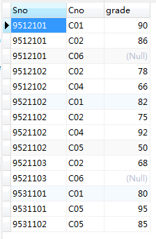 数据库中有三张表,student学生表、course选课表、sc成绩表。