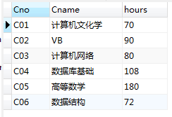 inner join SC ON Cno IN(SELECT Cno FROM course WHERE Cname=\'数据库基础\') -- 显示成绩的条件,仅联结了两张表,On 后面也可以跟不同的联结条件。