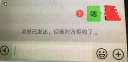 若对方拉黑了你,你发消息给对方会提示被拒收