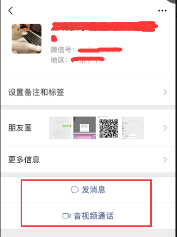 此时能够和对方发送消息,音频视频等,但朋友圈只能看到十条,