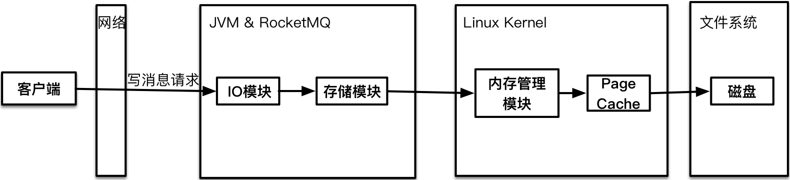 作为一款纯Java语言开发的消息引擎,RocketMQ自主研发的存储组件,依赖Page Cache进行加速和堆积,意味着它的性能会受到JVM、GC、内核、Linux内存管理机制、文件IO等因素的影响。如下图所示,一条消息从客户端发送出,到最终落盘持久化,每个环节都有产生延迟的风险。通过对线上数据的观察,RocketMQ写消息链路存在偶发的高达数秒的延迟。