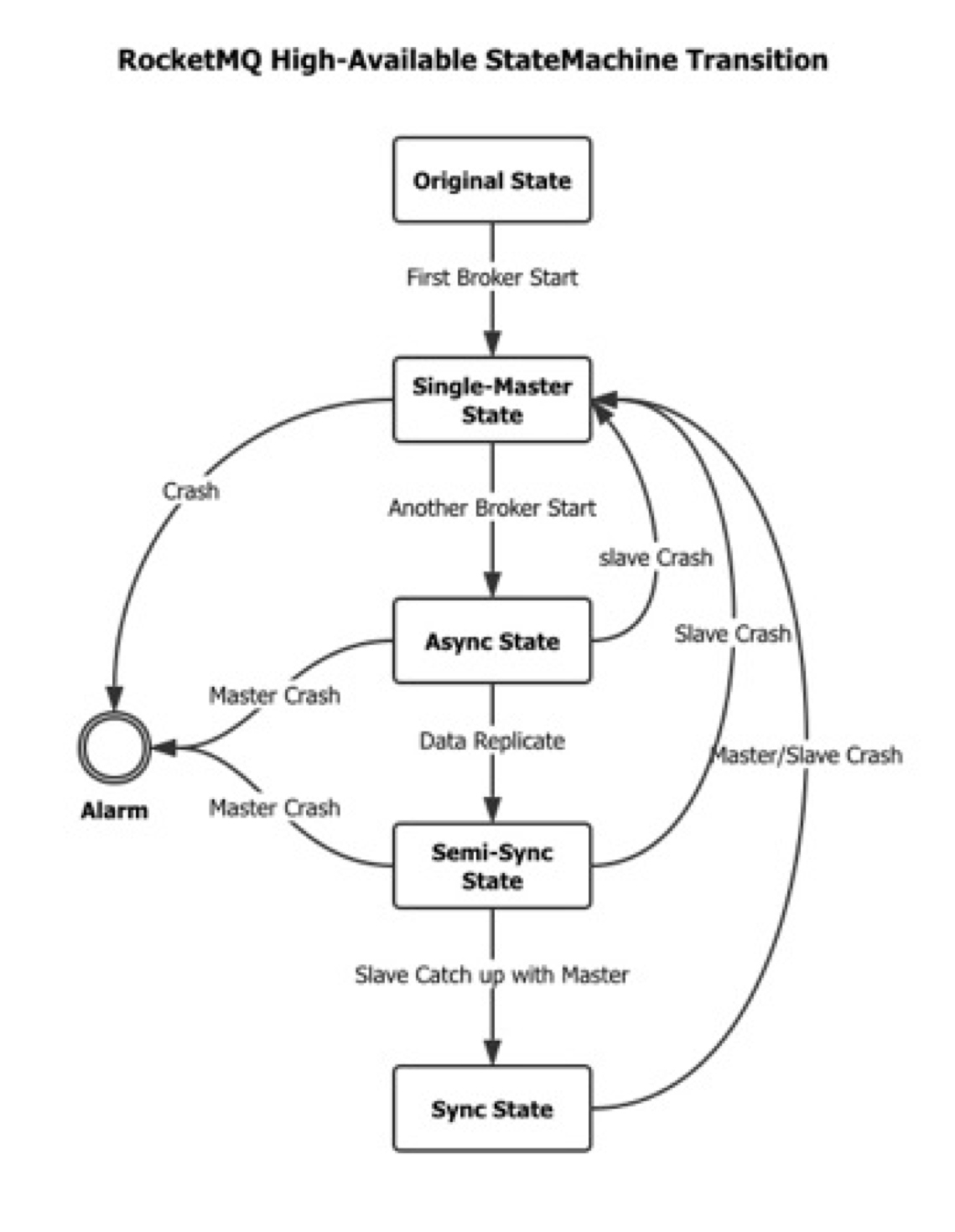 下图描述了RocketMQ高可用架构中有限状态机的转换: