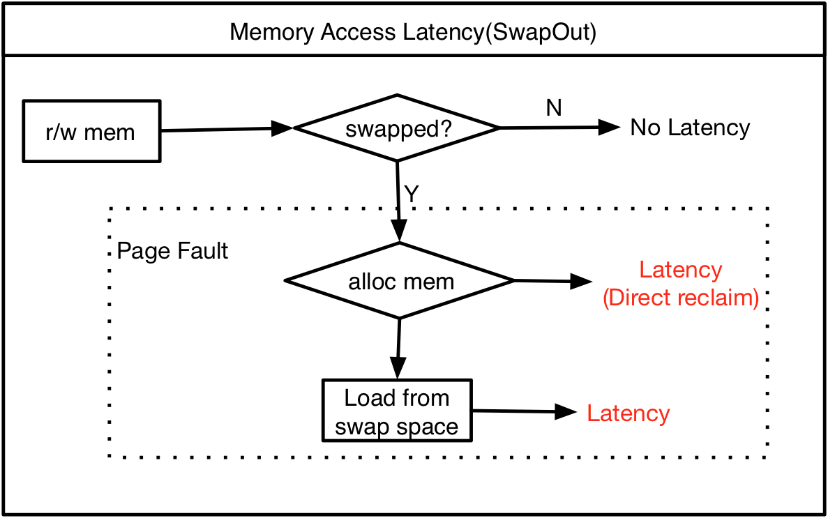 另一方面,内核也会回收匿名内存页,匿名内存页被换出后下一次访问会产生文件IO,导致延迟,如下图所示。
