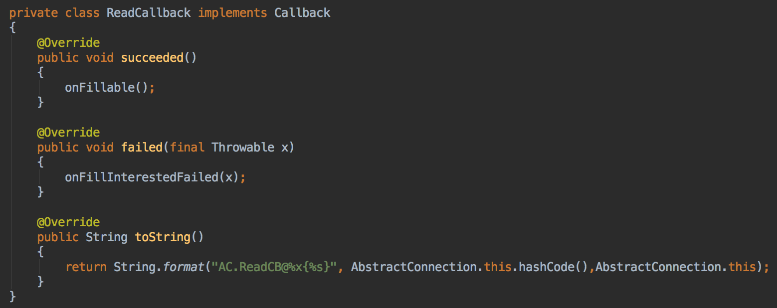 endPoint、executor赋值,没啥说的,注意看readCallback,这里直接给了个ReadCallback,这个callback就是我们前面提的SelectChannelEndPoint通知用的回调,我们继续看它的实现