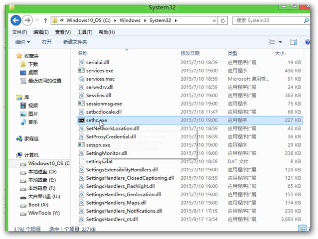 由于在win10中没有权限修改C:\Windows\System32文件夹中的所有文件,懒得去查如何获取修改权限,直接用最简单的方法,通过PE去修改win10中的系统文件。