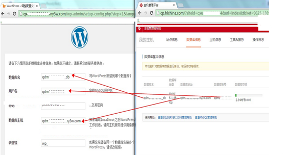 6. 请注意数据库的配置方法。数据库的连接地址不是localhost,而是 主机管理控制台>数据库信息页面中的数据库信息。