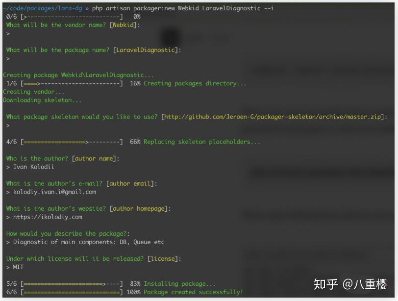 然后你可以运行生成命令。Webkid 代表供应商名称(你的命名空间), LaravelDiagnostic 代表你的项目名称: