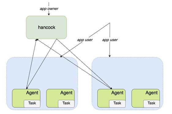Agent 启动后会上报消息到 Master, 而 Master 会根据用户的请求和上报的消息下发指定给 Agent 。由于边缘节点和数据中心的网络可能处于不稳定的状态,在处理数据的时候会出现超时、延迟等问题,同步操作可能会导致用户的请求一直得不到响应,最终导致信息丢失等问题,因此 Master 与 Agent 的数据交互、消息处理都是异步进行的。这种情况下,用户只要把请求提交到 Hancock Master 上,这个任务就会分发到所有的边缘节点。