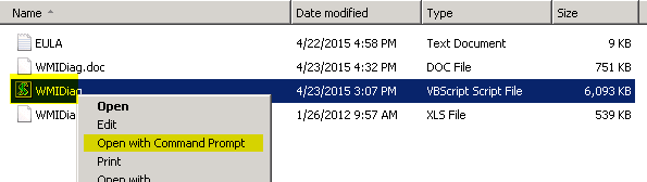 When you run the downloaded .EXE it will ask you where to extract the files. Once extracted right click the WMIDiag VBScript and click Open with Command Prompt