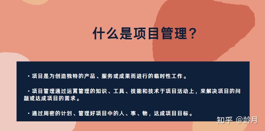 项目管理需要的知识建议题主通过学习PMBOK来获得,考取PMP证书对提升项目管理能力、领导能力是非常好的选择。PMP认证还能帮助我们在求职中脱颖而出,拓展人脉资源,更好的融入项目管理社团圈子。建议题主看这篇文章,加深对项目经理的了解!内附免费的项目管理工具,赶紧收藏吧!