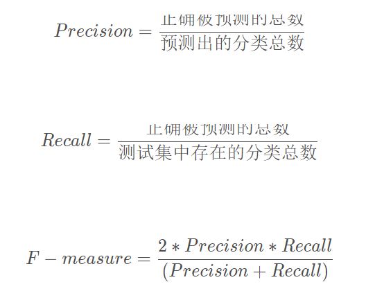 接着作者尝试自定义准确率(Precision)、召回率(Recall)和F特征值(F-measure),其计算公式如下: