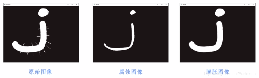 图像去噪通常需要先腐蚀后膨胀,这又称为开运算,下篇文章将详细介绍。如下图所示: