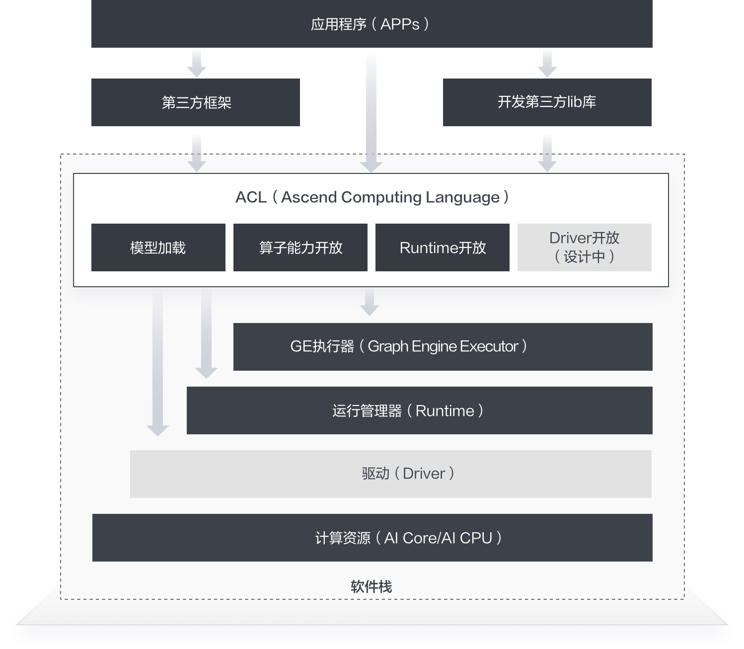 对已训练好的权重文件,比如 Caffe框架下的 caffemodel, TensorFlow框架下得到的 checkpoint 或者 pb 文件,再经过 ATC 工具转换后得到的离线模型文件,ACL(Ascend Computing Language,昇腾计算语言)提供了一套用于在昇腾系列处理器上进行加速计算的API。基于这套API,您能够管理和使用昇腾软硬件计算资源,并进行机器学习相关计算。更详细的ACL介绍,可参看官方文档 。