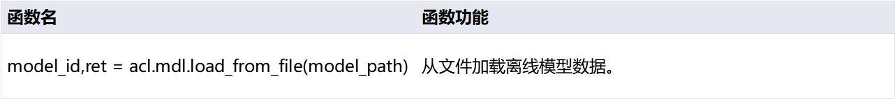 def load_model(model_path): model_path = "./model/googlenet_yuv.om" model_id, ret = acl.mdl.load_from_file(model_path) check_ret("acl.mdl.load_from_file", ret) return model_id