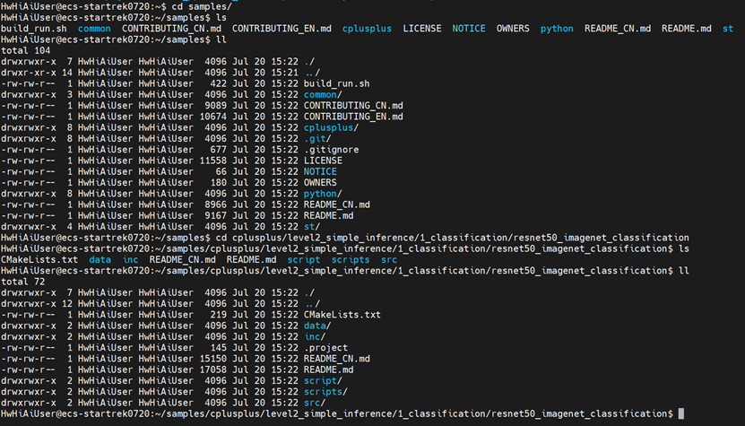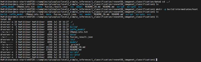 进入“cplusplus/level2_simple_inference/1_classification/resnet50_imagenet_classification”样例目录