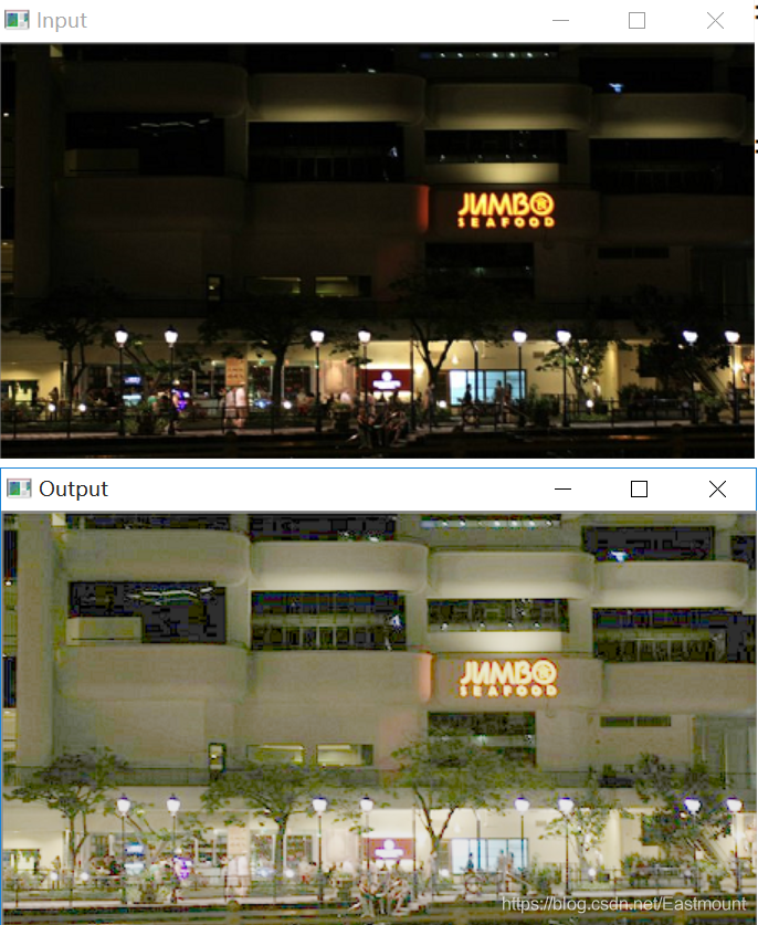 # -*- coding: utf-8 -*- import numpy as np import matplotlib.pyplot as plt import cv2 #绘制曲线 def log_plot(c): x = np.arange(0, 256, 0.01) y = c * np.log(1 + x) plt.plot(x, y, 'r', linewidth=1) plt.rcParams['font.sans-serif']=['SimHei'] #正常显示中文标签 plt.title(u'对数变换函数') plt.xlim(0, 255), plt.ylim(0, 255) plt.show() #对数变换 def log(c, img): output = c * np.log(1.0 + img) output = np.uint8(output + 0.5) return output #读取原始图像 img = cv2.imread('test.png') #绘制对数变换曲线 log_plot(42) #图像灰度对数变换 output = log(42, img) #显示图像 cv2.imshow('Input', img) cv2.imshow('Output', output) cv2.waitKey(0) cv2.destroyAllWindows()