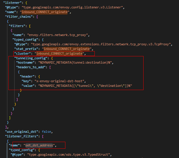 (6)”inbound_CONNECT_originate”监听器是waypoint处理流程中的最后一个过滤器,它会通过HTTP Connect方法告诉目标ztunnel建立到"%DYNAMIC_METADATA(tunnel:destination)%的隧道,这里CONNECT地址即10.244.2.8:9080。并且通过“set_dst_address”将数据包的目的地址设置为10.244.2.8:15008。