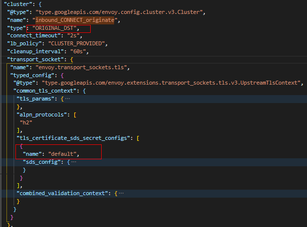 (7)” inbound_CONNECT_originate” Cluster为ORIGINAL_DST类型,并且设置有TLS Context。因此最后经过TLS加密后,数据包最终被发往10.244.2.8:15008。