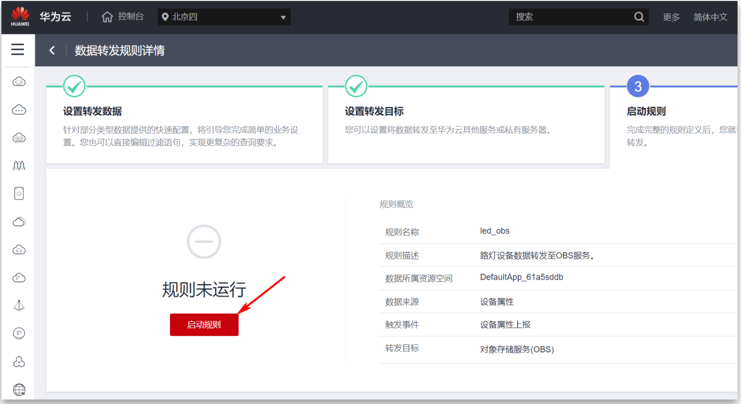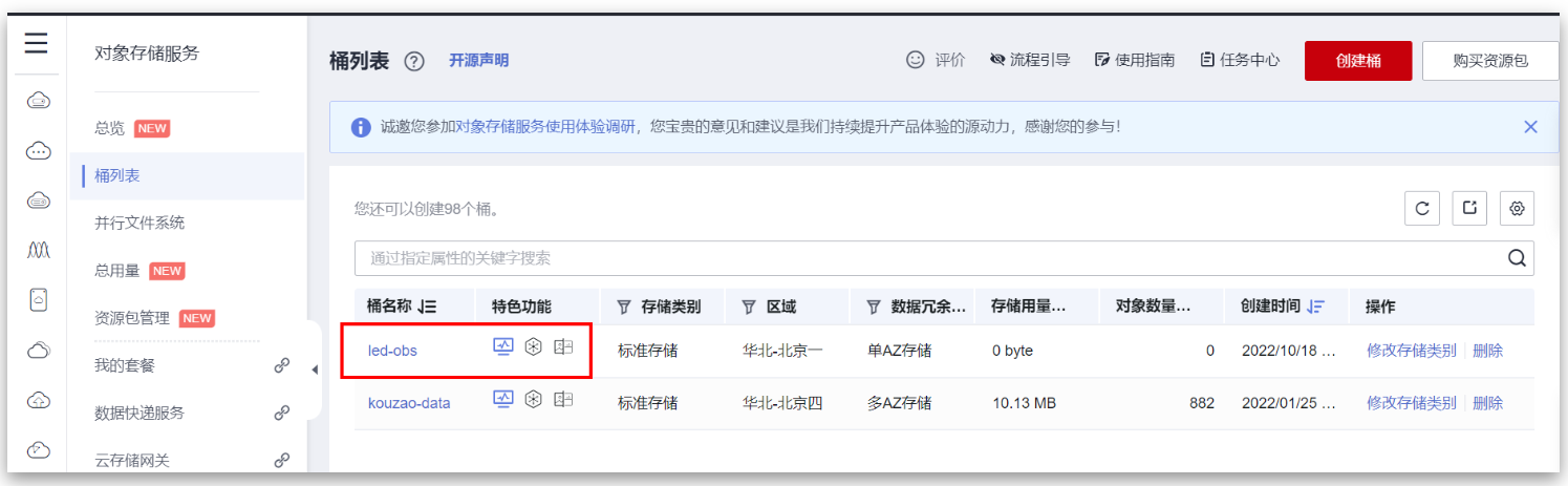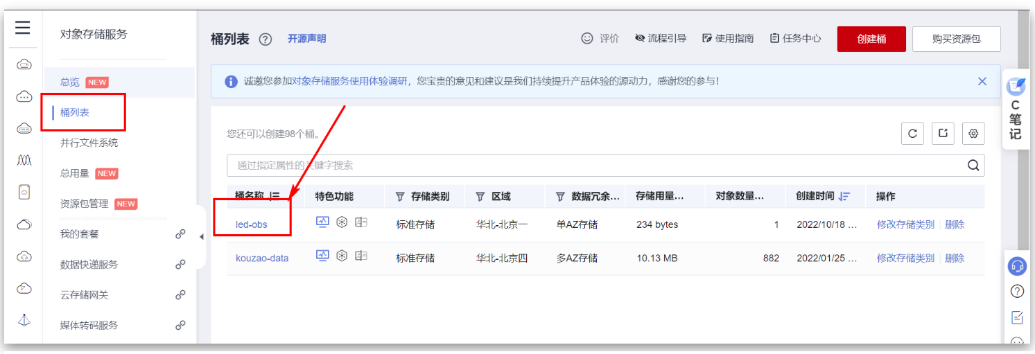 上传之后,打开OBS存储桶的控制台页面。打开转发规则存储的OBS桶。