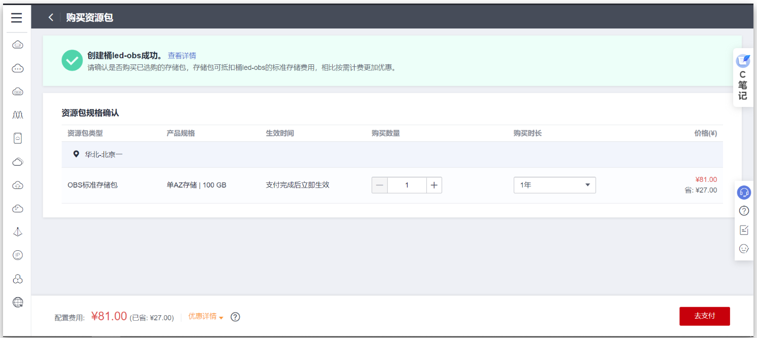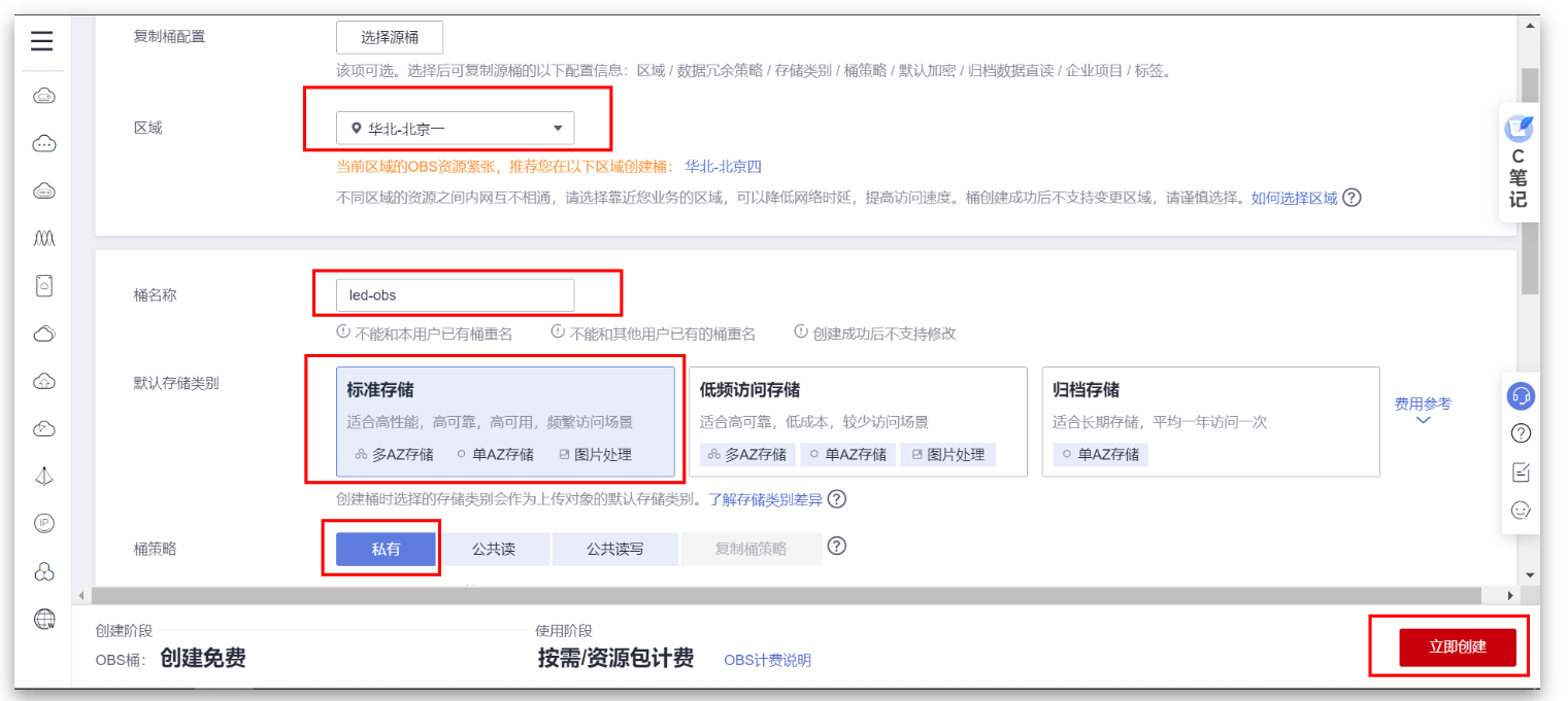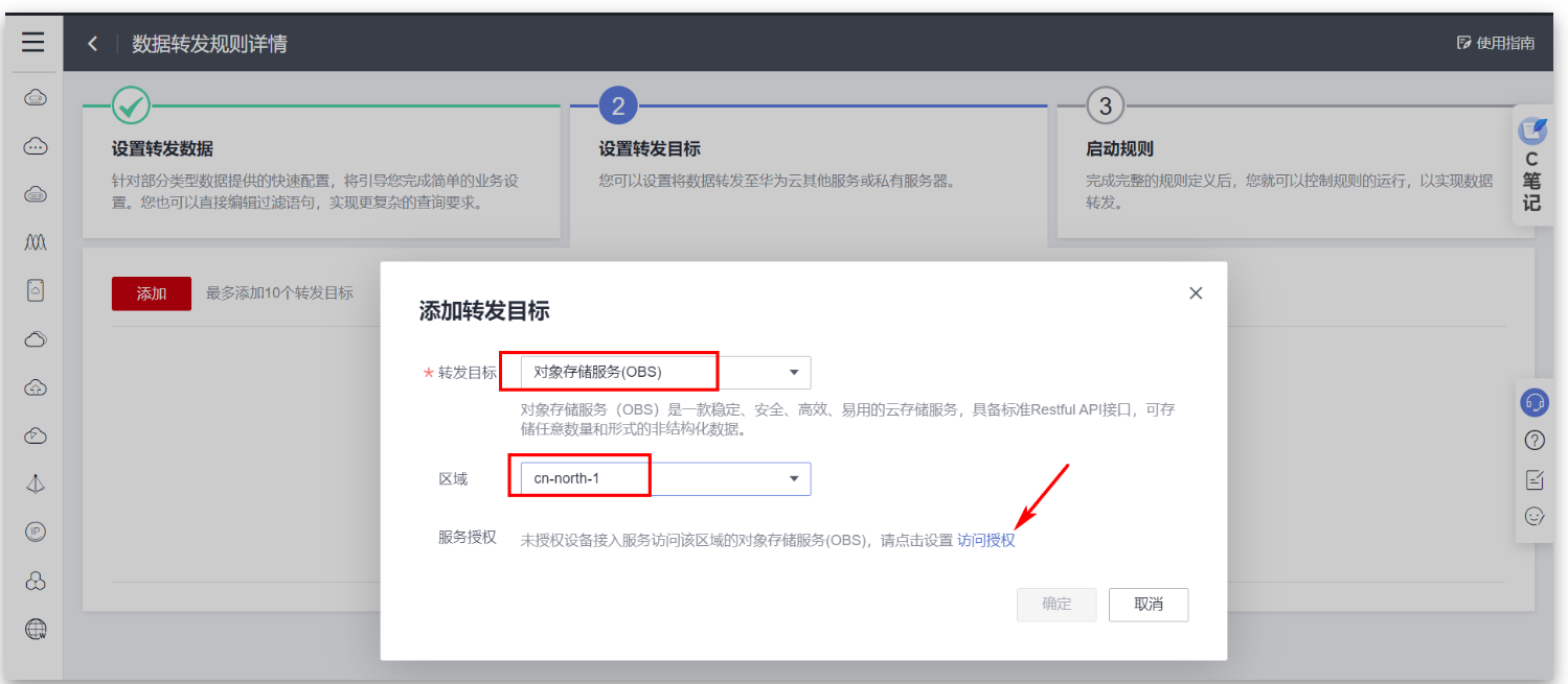 这里的区域选择--华北-北京一。 因为前面的OBS桶创建的时候,设置区域设置的是北京一,然后点击授权。