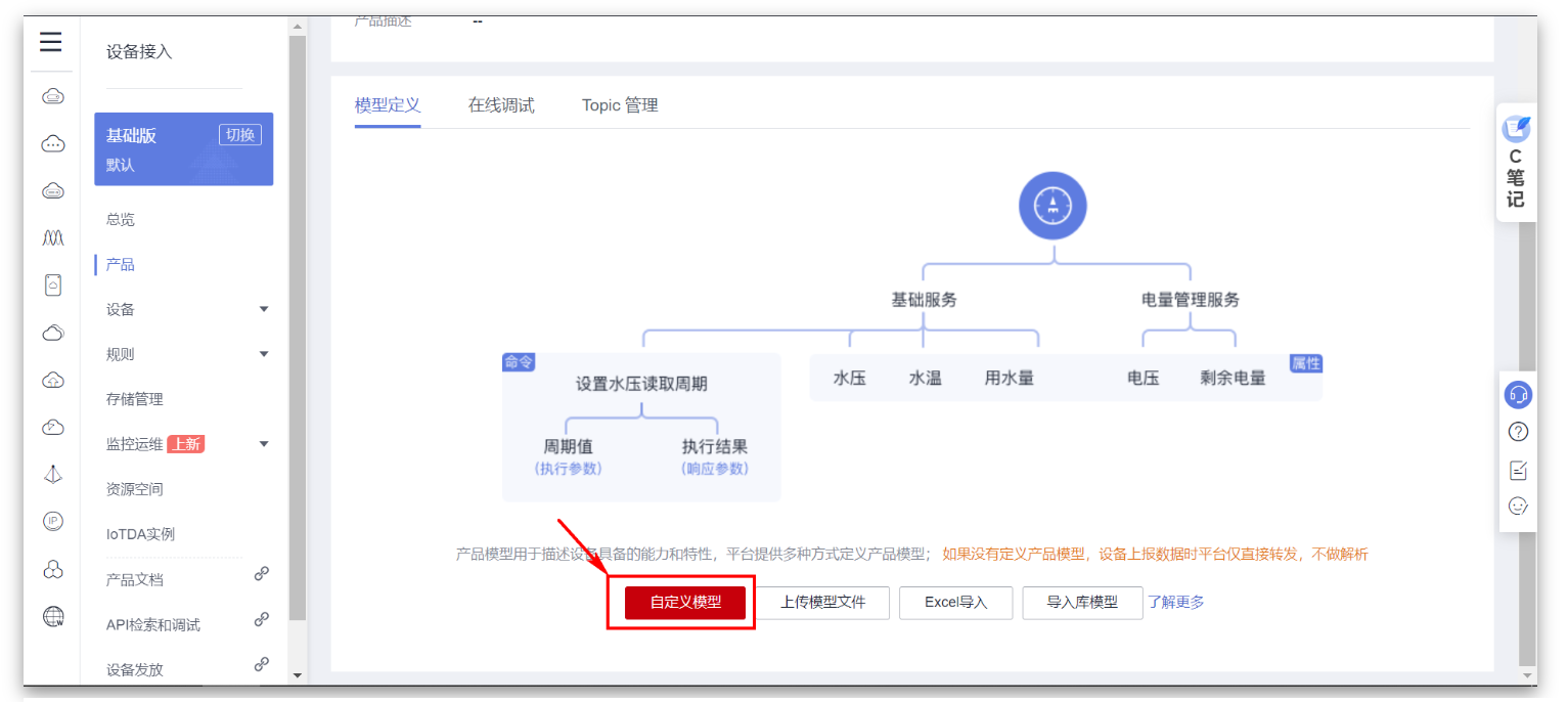 产品创建之后,接着需要在平台上构建一款设备的抽象模型,使平台理解该款设备支持的功能。