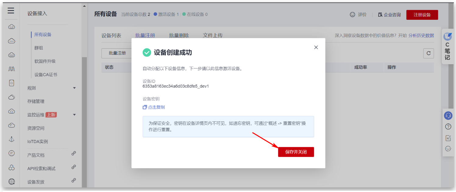 这个设备密匙和ID,后面生成MQTT登录参数时需要用到。