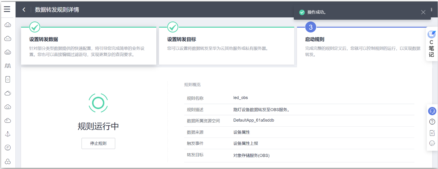 (2)云数据存储: 使用OBS存储,存放设备上传的历史数据。