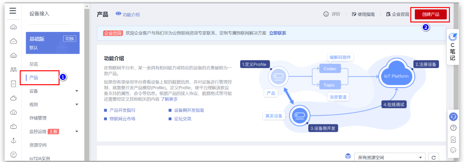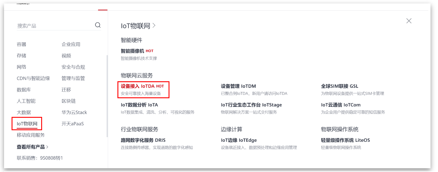 在产品页面找到iot物联网,选择设备接入IOTDA