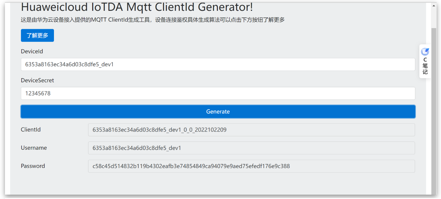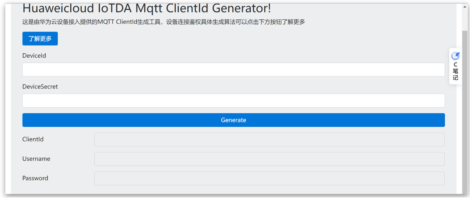 华为云提供了一个在线工具,用来生成MQTT鉴权三元组: https://iot-tool.obs-website.cn-north-4.myhuaweicloud.com/