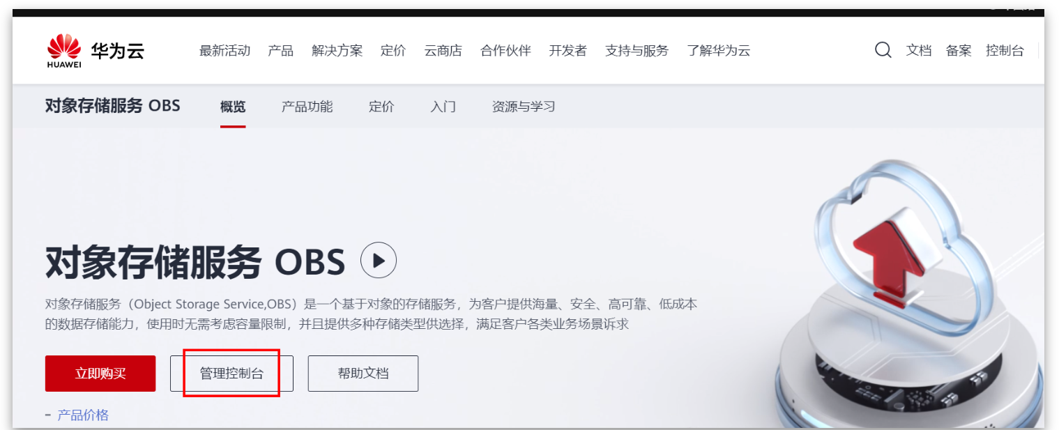 对象存储服务(Object Storage Service,OBS)是一个基于对象的存储服务,提供了海量、安全、高可靠、低成本的数据存储能力。