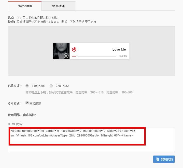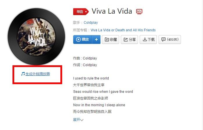 打开网页版的网易云音乐,选择喜欢的音乐,点击生成外链播放器
