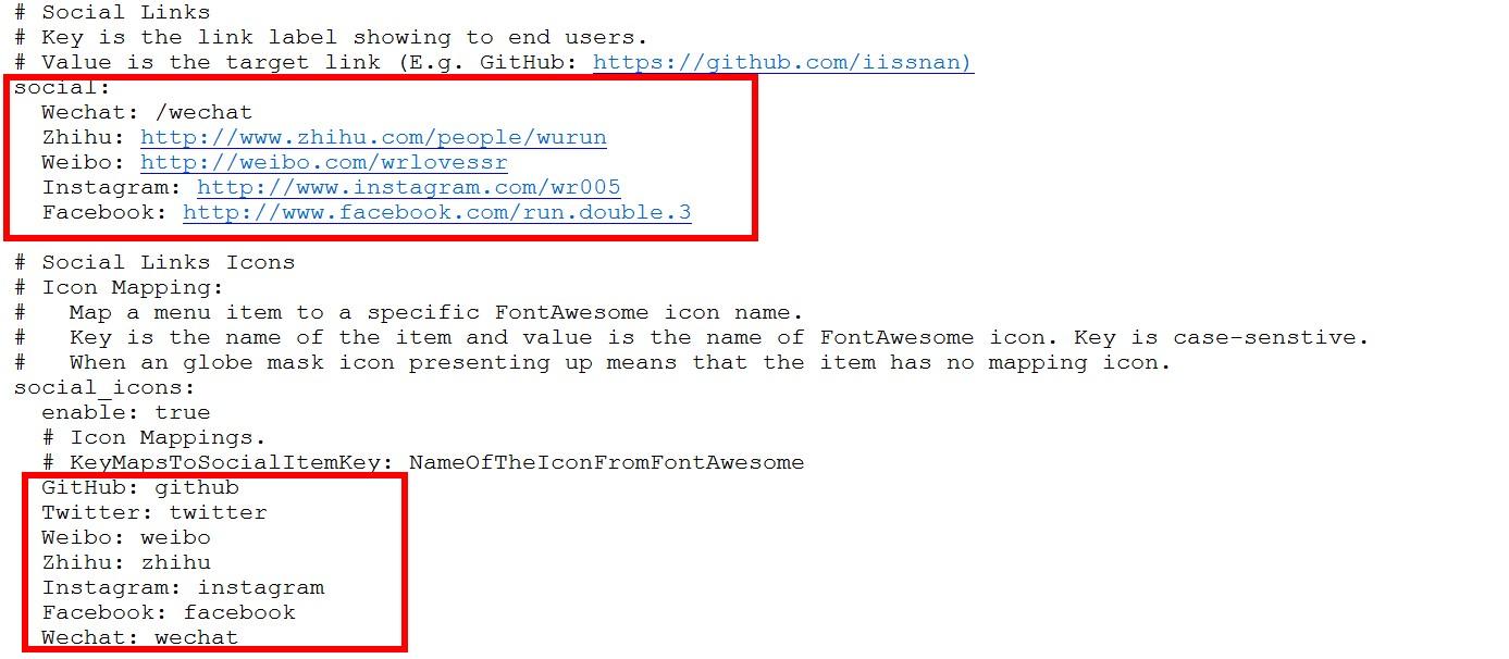 社交外链的设置,即在侧栏展示你的个人社交网站信息。