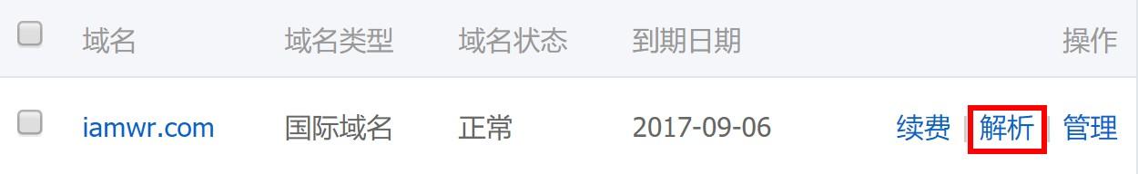 虽然在Internet上可以访问我们的网站,但是网址是GitHub提供的:http://xxxx.github.io (知乎排版可能会出现"http://"字样) 而我们想使用我们自己的个性化域名,这就需要绑定我们自己的域名。这里演示的是在阿里云万网的域名绑定,在国内主流的域名代理厂商也就阿里云和腾讯云。登录到阿里云,进入管理控制台的域名列表,找到你的个性化域名,进入解析
