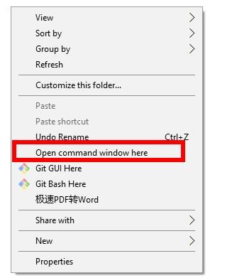 Hexo就是我们的个人博客网站的框架, 这里需要自己在电脑常里创建一个文件夹,可以命名为Blog,Hexo框架与以后你自己发布的网页都在这个文件夹中。创建好后,进入文件夹中,按住shift键,右击鼠标点击命令行