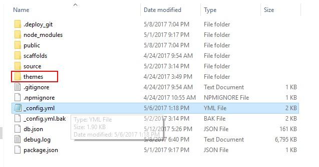 进入根目录里的themes文件夹,里面也有个_config.yml文件,这个称为主题配置文件,如下图