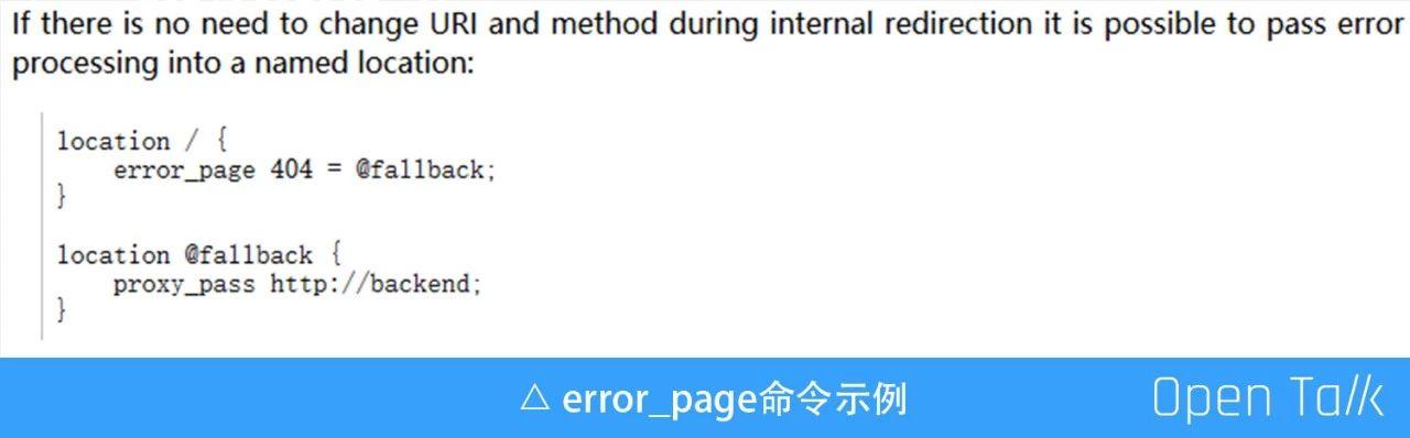 我们要做服务兜底的时候,网关已经上线了一年多,这个时候如果想要重写,无异于火中取栗。比较幸运的是,在查看 Nignx 官方文档的时候,发现原生命令 error_page。