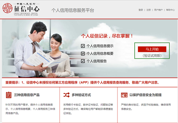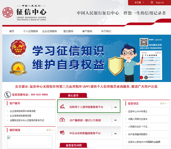 第一步,打开征信中心首页,点击主页的“互联网个人信用信息服务平台”