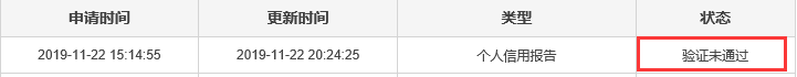 另外,如果你按照上面的方式申请查看信用报告后提示验证不通过,如下