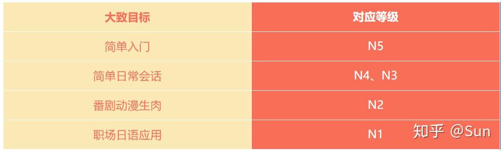 学习日语,为了达到说出口、自由行等目的,我们需要将这些目标可视化。用日语界里公认的JLPT日本语能力考试来举例,日语从低到高可以分为N5-N1五个等级。可以找找自己对应的是下面JLPT等级中的哪一个: