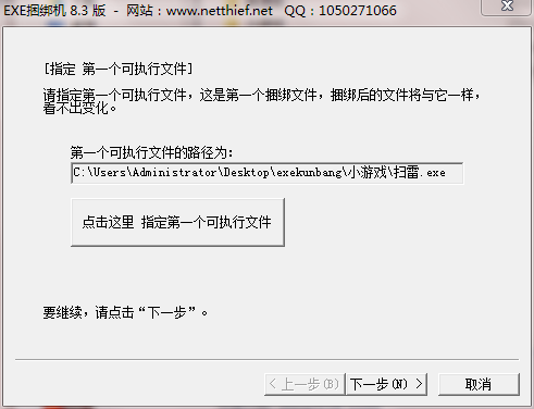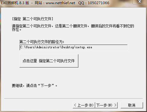 点击下一步,选择第二个要捆绑的软件,即之前生成的木马程序setup.exe:
