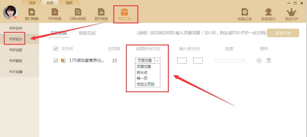 如果平时有不同办公文档格式互转,其实转换器也有PDF页面提取的功能,而且提取方式条件设置更细致,可以达到更多特殊提取需求。比如我们打开极速玩转后,选择PDF工具中的PDF拆分,添加需要提取页面的PDF文档后(支持多个文档上传),然后设置页面提取的方式以及对应的页码点击开始就可以了。