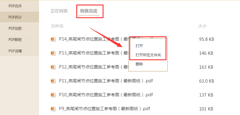 提取完成之后我们可以在转换完成中查看提取后的记录,在任意记录处右击可以打开及打开文件所在位置查看。