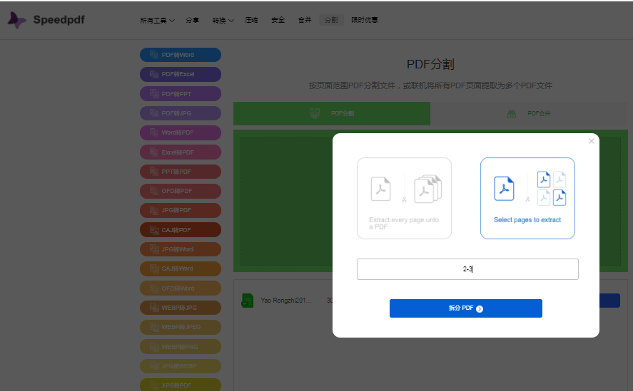 以上2种方式都是电脑的常用操作,如果是手机里的PDF文档页面提取,我们也可以使用在线提取的方法。首先搜索speedpdf打开在线提取工具后,选择PDF分割并添加PDF文档,设置拆分页面后点击开始拆分就可以了,完成后直接点击下载即可。
