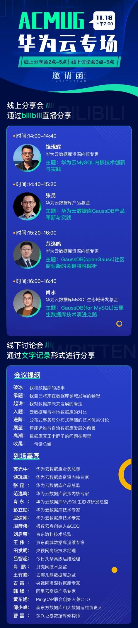 11月18日,由ACMUG中国MySQL用户组主办的 “华为云专场” 技术沙龙在北京进行,华为云数据库业务总裁苏光牛及多位技术专家在会上分享了华为云数据库重磅新品GaussDB的核心能力与竞争优势。