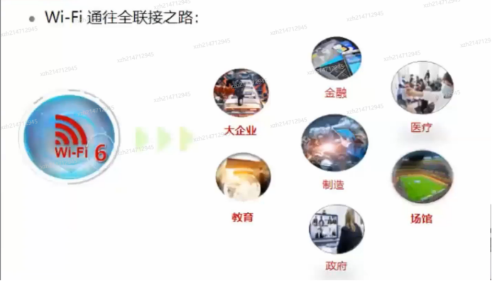 在很多场景里面,其实啊我们通过运营商去连接,它的成本比较高昂。我们中国还是社会主义的国家,有这样的大国去培养这么多的国企,不计经济利益人的去建设,比如说六百万家的4G基站或者一千万家的5G基站,但是绝大多数国家都没有这样的国力,其实美国也不会有这样的社会条件去建设这么多的站点。所以在整个全球范围内,在尤其是在室内,会找到一种经济、好用的连接技术,人的连接、物的连接,我们就看到WiFi,那么WiFi它会进行改良,我们今天晚上给大家介绍的WiFi6,WiFi6在企业、金融、医疗、场馆、政府、教育、您的家庭里面,不仅仅可以满足手机的上网的需求,同时也可以连接物的连接。
