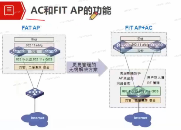 FAT AP组网更适合在家庭和中小型网络中使用,无法满足大型的无线企业网络的需求,这是由于FAT AP自身的特点所决定的。当需要组建大型无线网络或需要要更多的增值服务时:AC和 FIT AP因此应运而生。