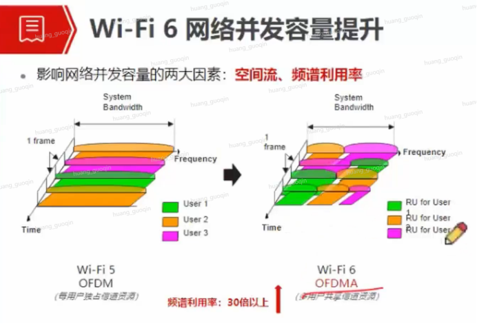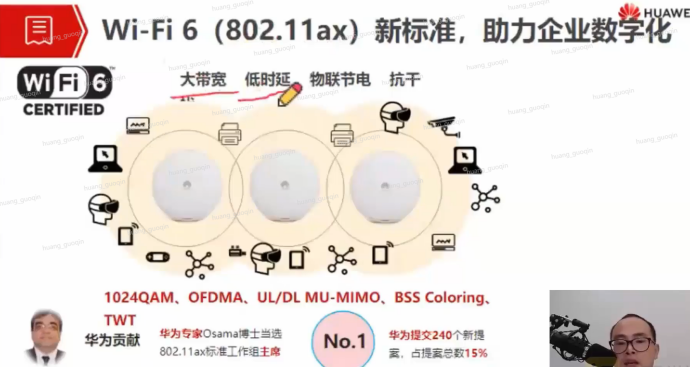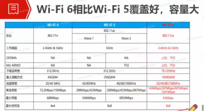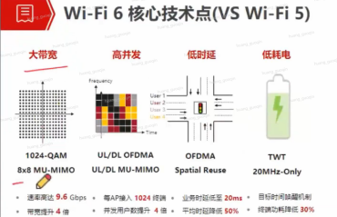 WiFi6从 DL/UL MU-MIMO、OFDMA、1024-QAM三大最重要的核心技术上实现了设定的目标,另外,华为通过自己的软件算法优化实现了对802.11ac及之前标准的老终端性能提升。