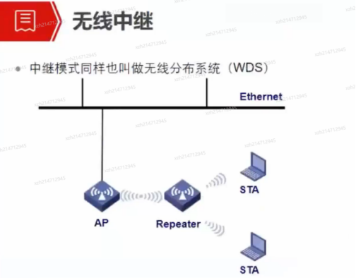 无线中继,中继模式同样也叫做无线分布系统(WDS),wDs (Wireless Distribution System无线分布式系统)︰通过无线链路连接两个或者多个独立的有线局域网或者无线局域网,组建一个互通的网络,从而实现数据访问。无线WDS技术提高了整个网络结构的灵活型和便捷性。在WDS部署中,网桥组网模式可分为:点对点(P2P)方式、点对多点(P2MP)方式和中继桥接方式。